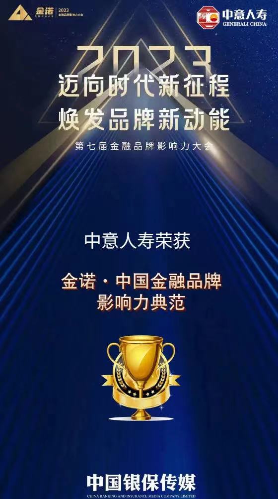 【新聞】中意人壽榮獲“2023金諾·中國金融品牌影響力典范”獎項