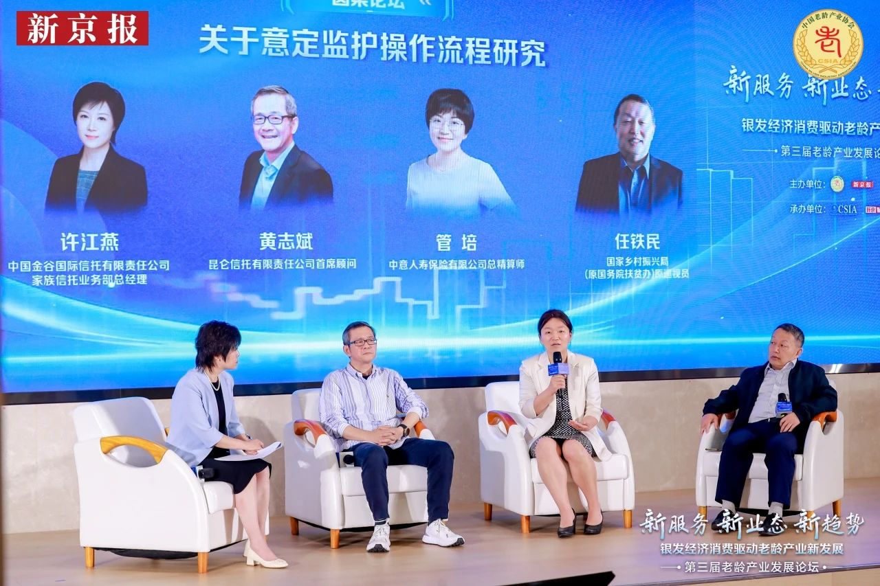 5月28日,在第三屆老齡產(chǎn)業(yè)發(fā)展論壇上,兩場圓桌論壇深入探討了銀發(fā)經(jīng)濟(jì)背景下的金融創(chuàng)新模式。圍繞“意定監(jiān)護(hù)操作流程研究”和“傳承規(guī)劃職業(yè)能力團(tuán)體標(biāo)準(zhǔn)研制”兩大主題,來自信托、保險(xiǎn)、法律等領(lǐng)域的專家學(xué)者展開了精彩對話,為應(yīng)對老齡化挑戰(zhàn)、滿足老年人多元化需求提供了專業(yè)視角和創(chuàng)新思路。